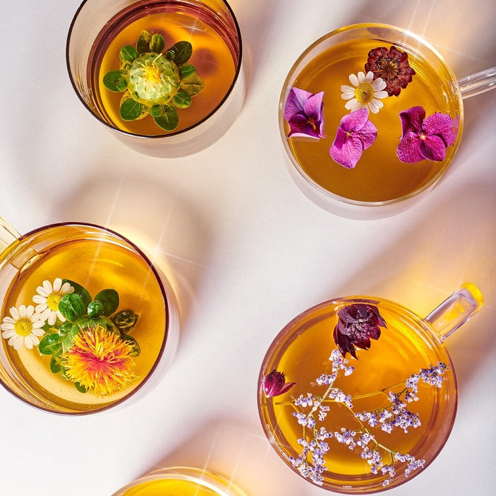 Our unique blends are infused with aromatic spices, fresh fruits, and blooming flowers, lending a touch of luxury to every sip. With a generous scattering of colorful petals and fruity pieces, our teas transform drinking into a visual feast, creating an unforgettable experience.