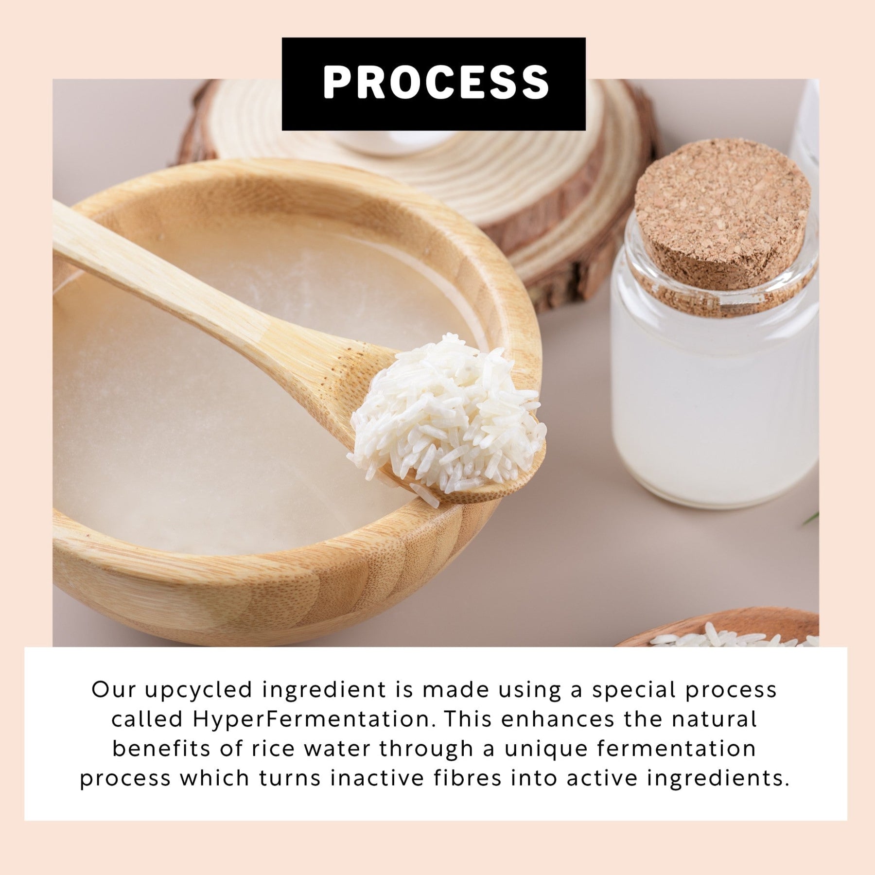 Das im Serum enthaltene fermentierte Reiswasser wird aus upgecyceltem, zerkleinertem Reis aus Italien gewonnen und von jahrhundertealten Schönheitsritualen inspiriert. Es wirkt als Feuchtigkeitsbooster, unterstützt stärkere, glänzendere Haare und verleiht der Haarfaser mehr Widerstandskraft. Dein Haar wirkt lebendiger, vitaler und sichtbar gepflegt.