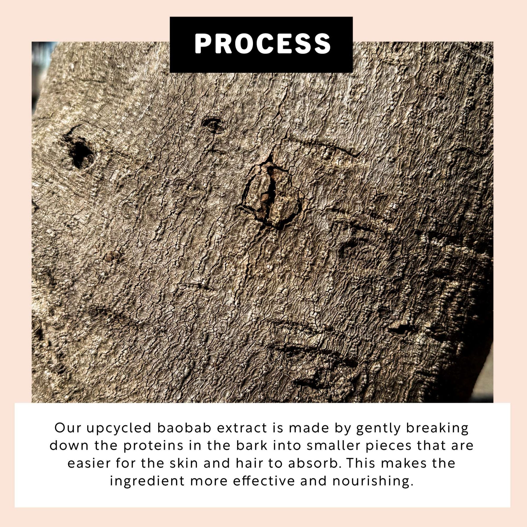 Der Baobab-Extrakt wird aus den Samen des Baobab-Baums gewonnen und liefert eine 5-in-1 Anti-Ageing-Wirkung: Er unterstützt Repair, Stärke, UV-Schutz, Feuchtigkeitserhalt und Nährstoffversorgung. Wie der Baobab-Baum in trockenen Klimazonen Wasser speichert, hilft der Extrakt deinem Haar, länger hydratisiert und widerstandsfähig zu bleiben – besonders bei Hitze, Sonneneinwirkung oder Styling.
