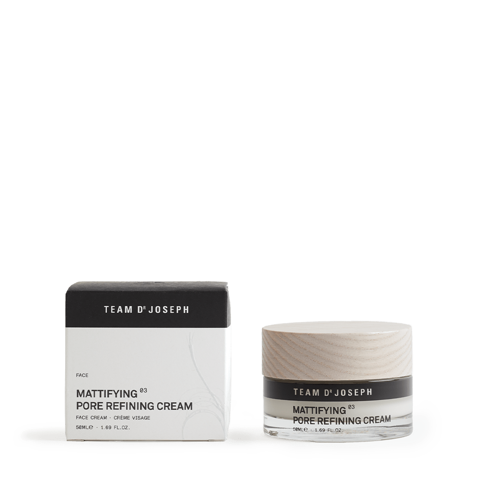 Experience the feeling of fresh, clear skin – all day long. The Mattifying Pore Refining Cream from Team Dr. Joseph was specially developed for combination, oily, or blemish-prone skin. It regulates excess sebum, visibly refines pores, and gives you a long-lasting matte, clear complexion – all without a heavy feel. The velvety texture melts into the skin and has an instantly smoothing effect – like a natural soft focus.