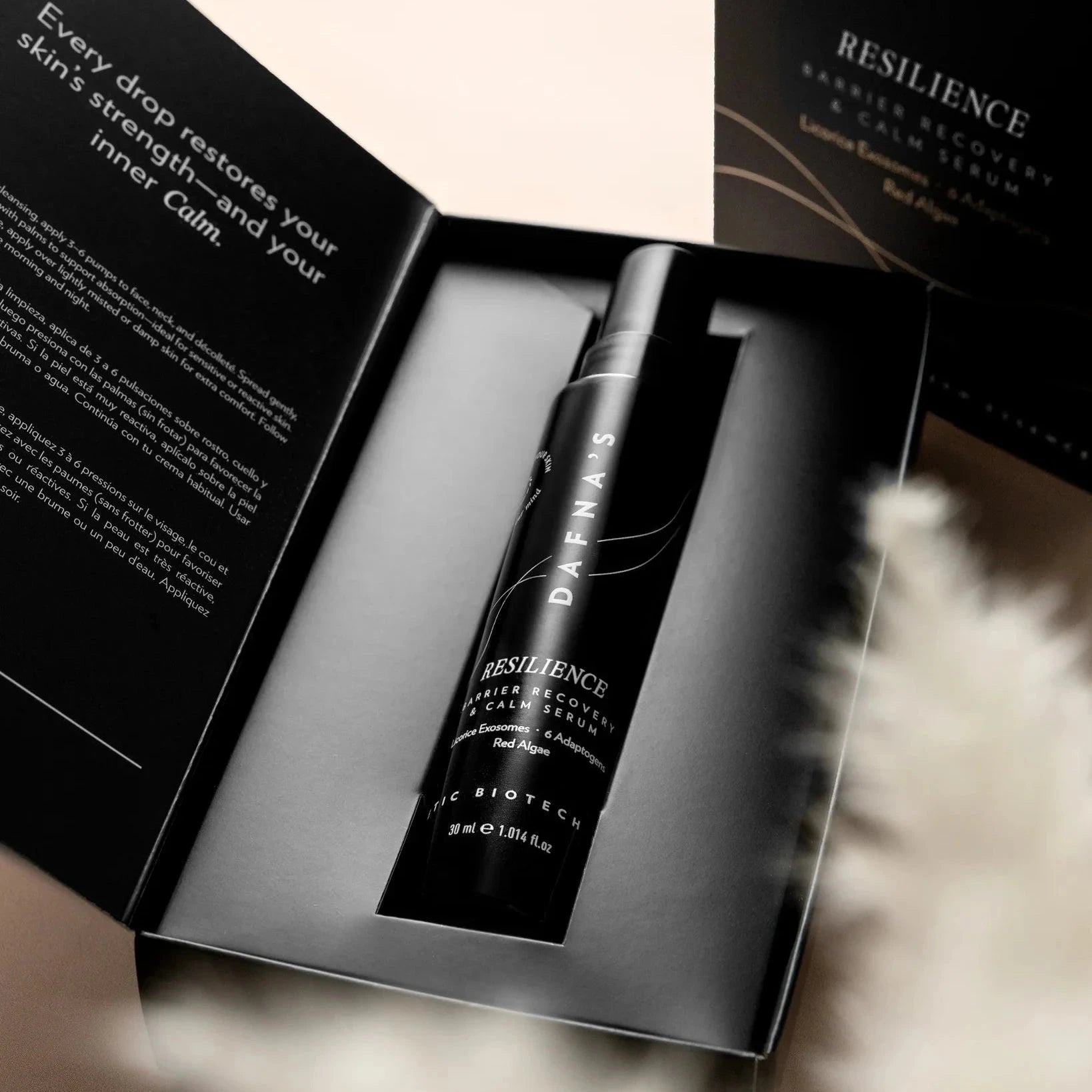 Das Resilience Serum von Dafna´s ist ein innovatives Pflegeprodukt der nächsten Generation, das epigenetische Biotechnologie mit Psychodermatologie vereint. Entwickelt für empfindliche, gestresste und reaktive Haut, spendet es intensive Feuchtigkeit, stärkt die Hautbarriere und reduziert sichtbar Rötungen sowie Irritationen.
