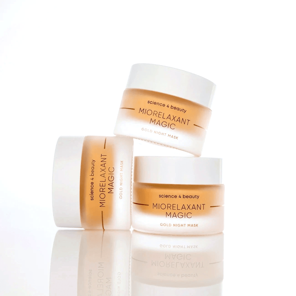 Die MIORELAXANT MAGIC™ Night Mask Goldvon science 4 beauty ist eine glättende Luxusmaske mit biotechnologisch gewonnenem Conotoxin. Sie wurde entwickelt, um die Haut über Nacht zu regenerieren, zu entspannen und zu verfeinern – für ein sichtbar glatteres, frischeres Hautbild am Morgen. Ideal für alle Hauttypen, auch empfindliche oder zu Trockenheit neigende Haut.