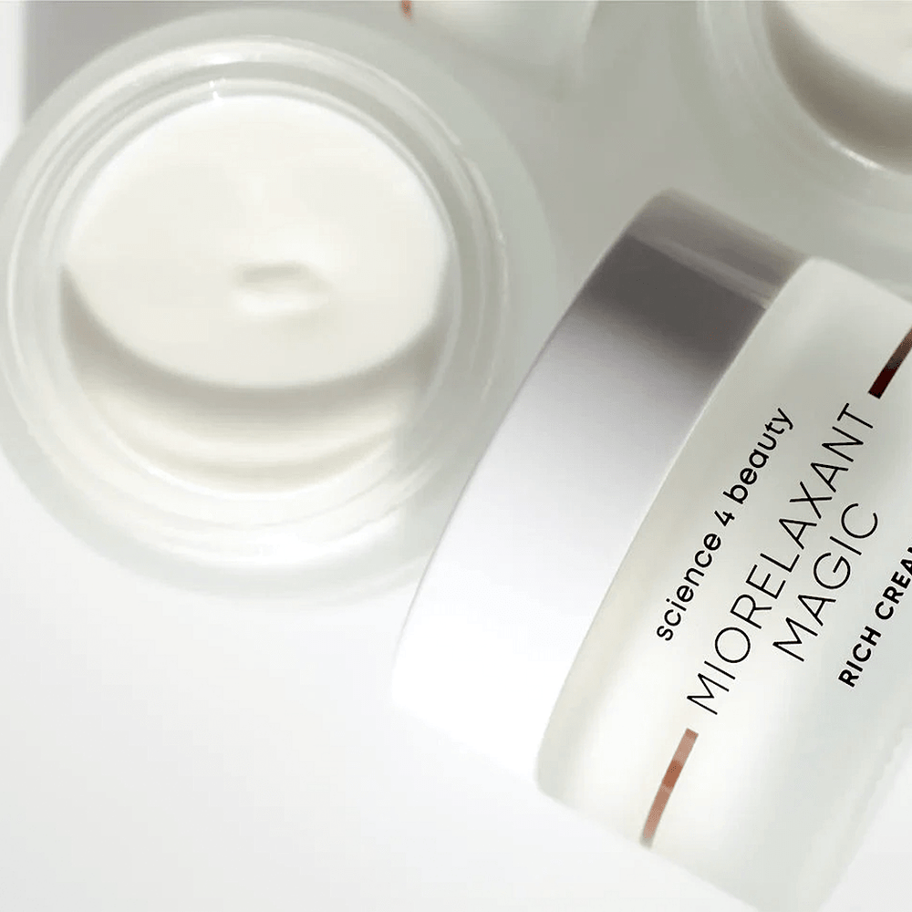 Mit der MIORELAXANT MAGIC™ Rich Cream vereint science 4 beauty biotechnologische Forschung mit sinnlicher Pflege. Die seidige Textur, der dezente Duft und die sofort sichtbare Glättung machen jede Anwendung zu einem Moment purer Eleganz – für Haut, die sich genauso luxuriös anfühlt, wie sie aussieht.