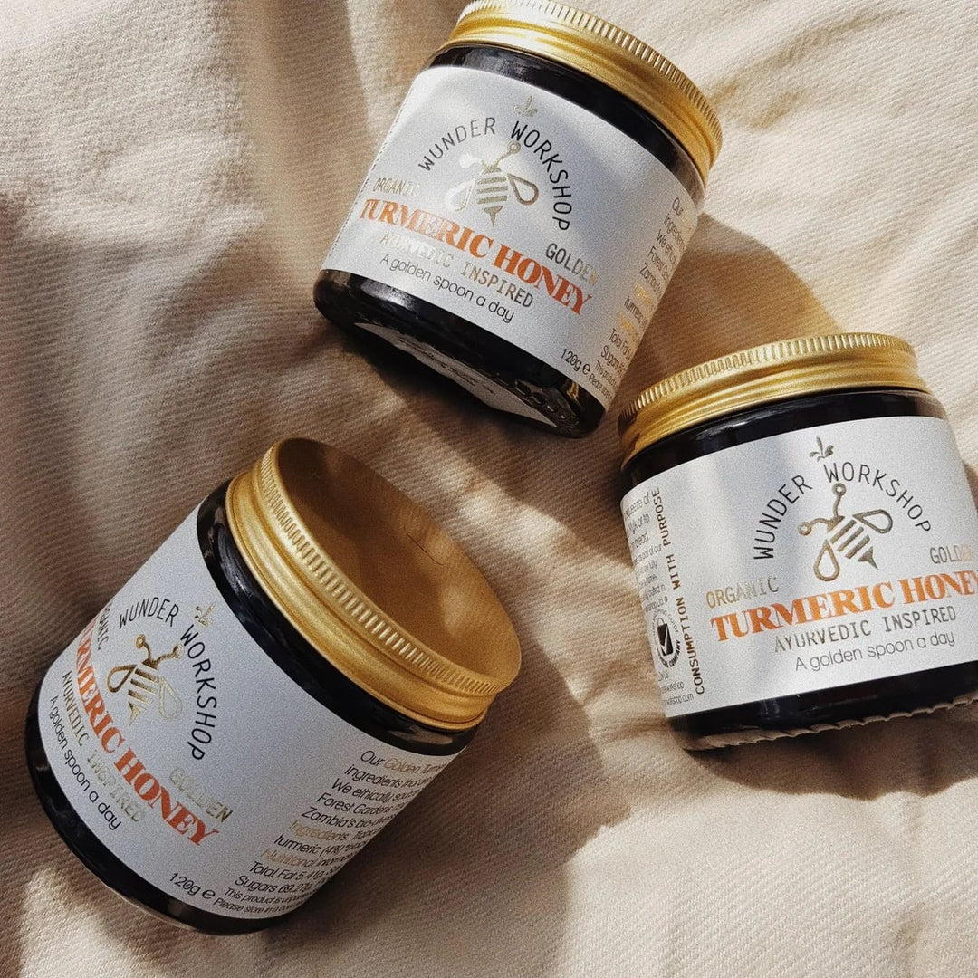 Der Organic Golden Tumeric Honey von Wunder Workshop enthält die drei stärksten entzündungshemmenden und immunstärkenden Inhaltsstoffe