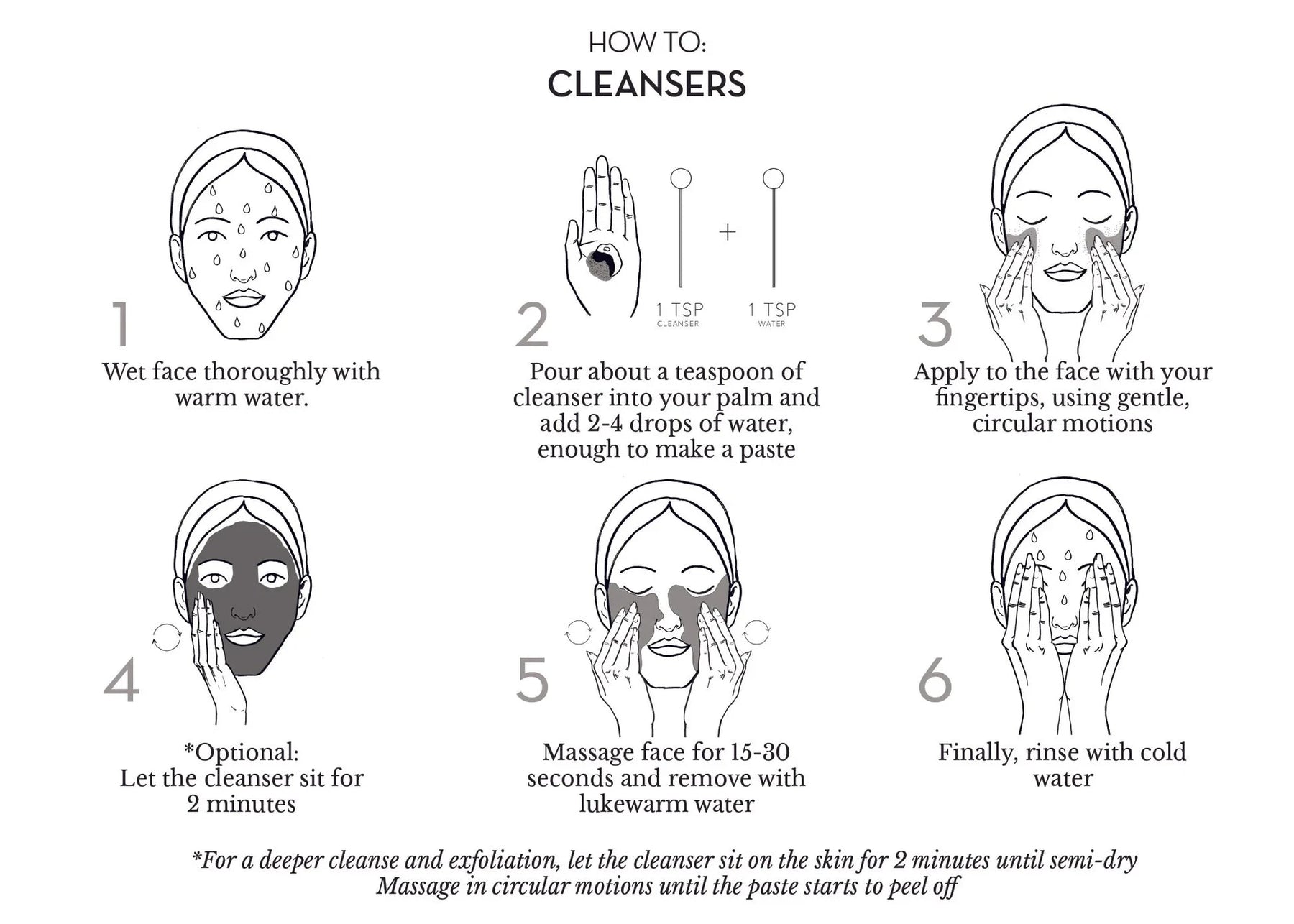 Gib eine kleine Menge des Pulvers in deine Handfläche und mische es mit Wasser oder Toner zu einer Paste. Sanft in die feuchte Haut einmassieren und gründlich abspülen. Je nach Mischung und Einwirkzeit eignet sich der Cleanser auch als mildes Peeling oder pflegende Gesichtsmaske.